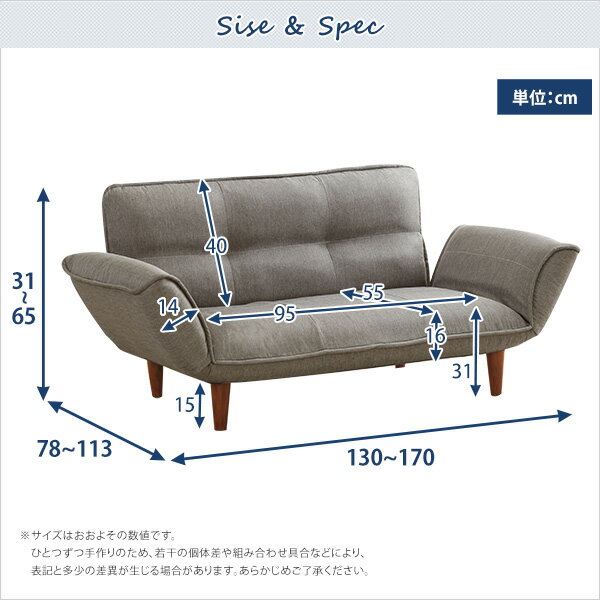 【商品について】コンパクトカウチソファ【Thun-トゥーン-】(ポケットコイル入り 二人掛け 日本製)■サイズ:外寸:(約)幅130〜170x奥行き78〜113x高さ31〜65cm座面高(約)31cm脚の高さ:(約)15cm※商品重量:(約)15kg■カラー:ターコイズブルー、ネイビー、グリーン、レッド、ブラウン、グレー■素材:構造材:スチールパイプクッション材:ウレタン(モールド成型)、ポケットコイルスプリング脚部:ポリプロピレン生地:ポリエステル100%■その他:・完成品でのお届けです。