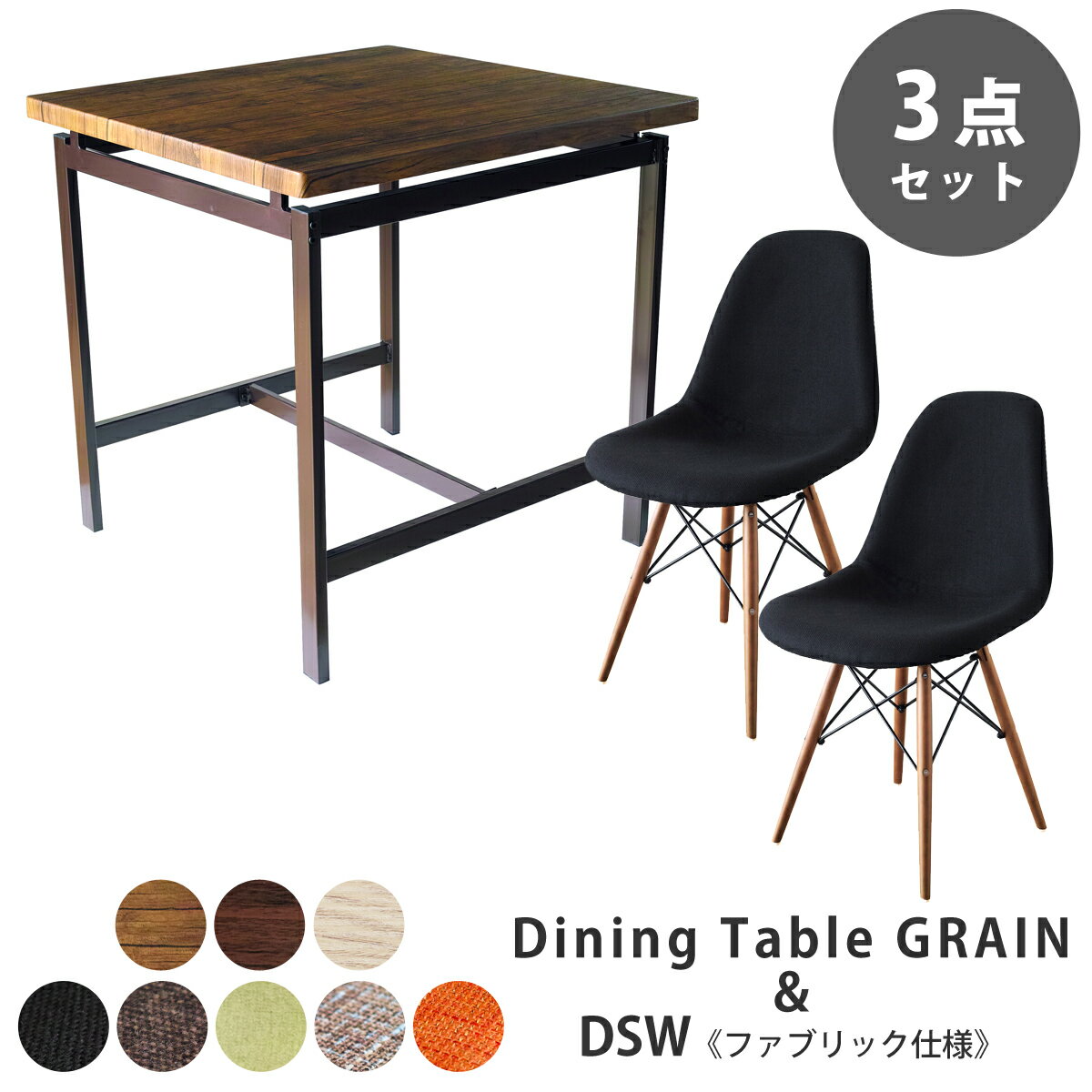 【お得なダイニング3点セット】鉄脚ダイニングテーブル グレイン & イームズ ダイニングサイドシェルチェア ファブリック仕様 送料無料 リプロダクト